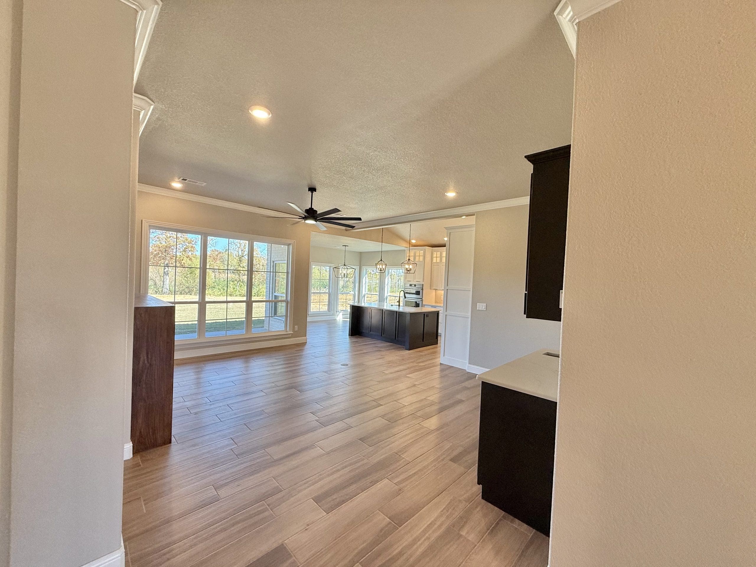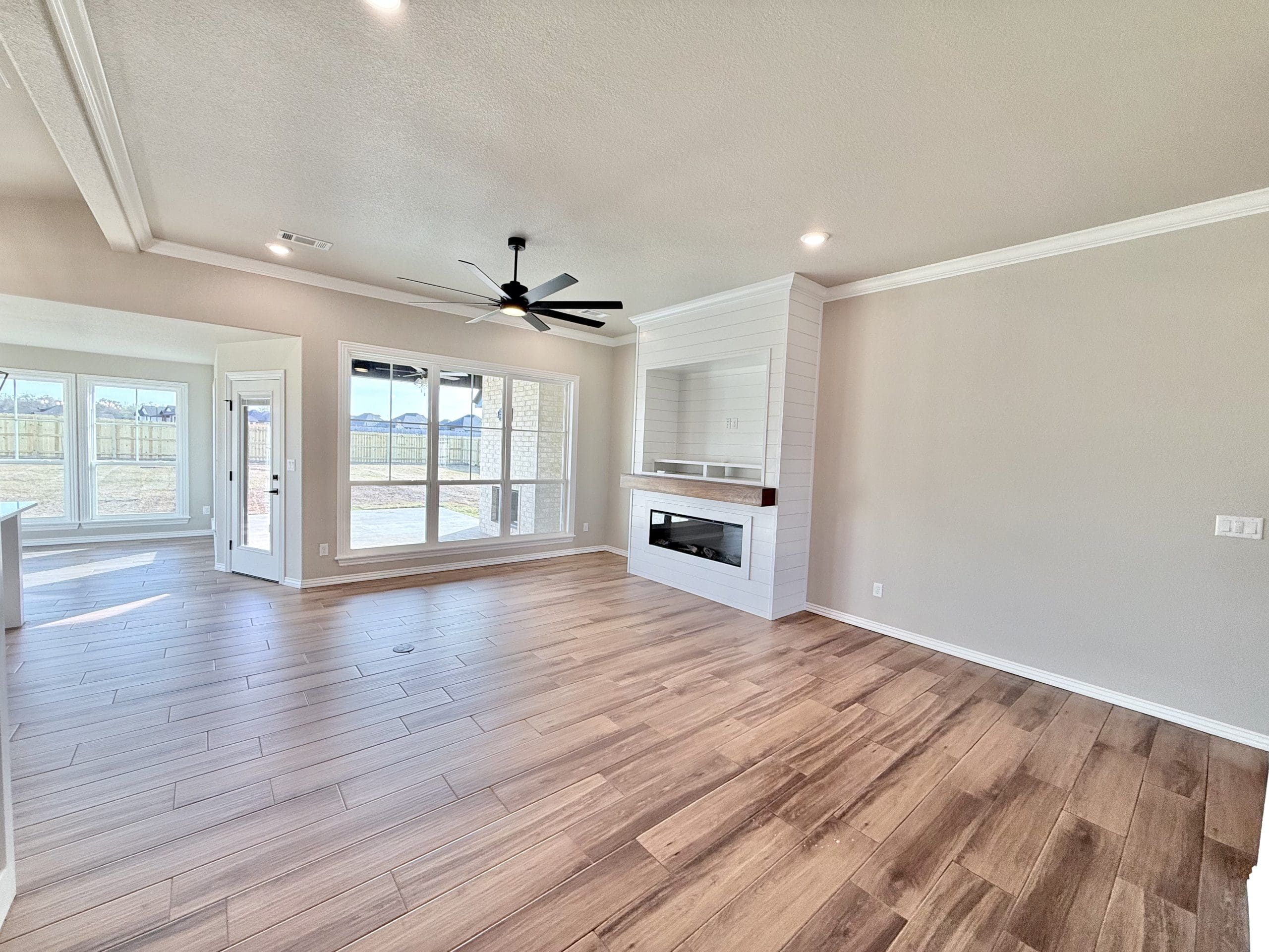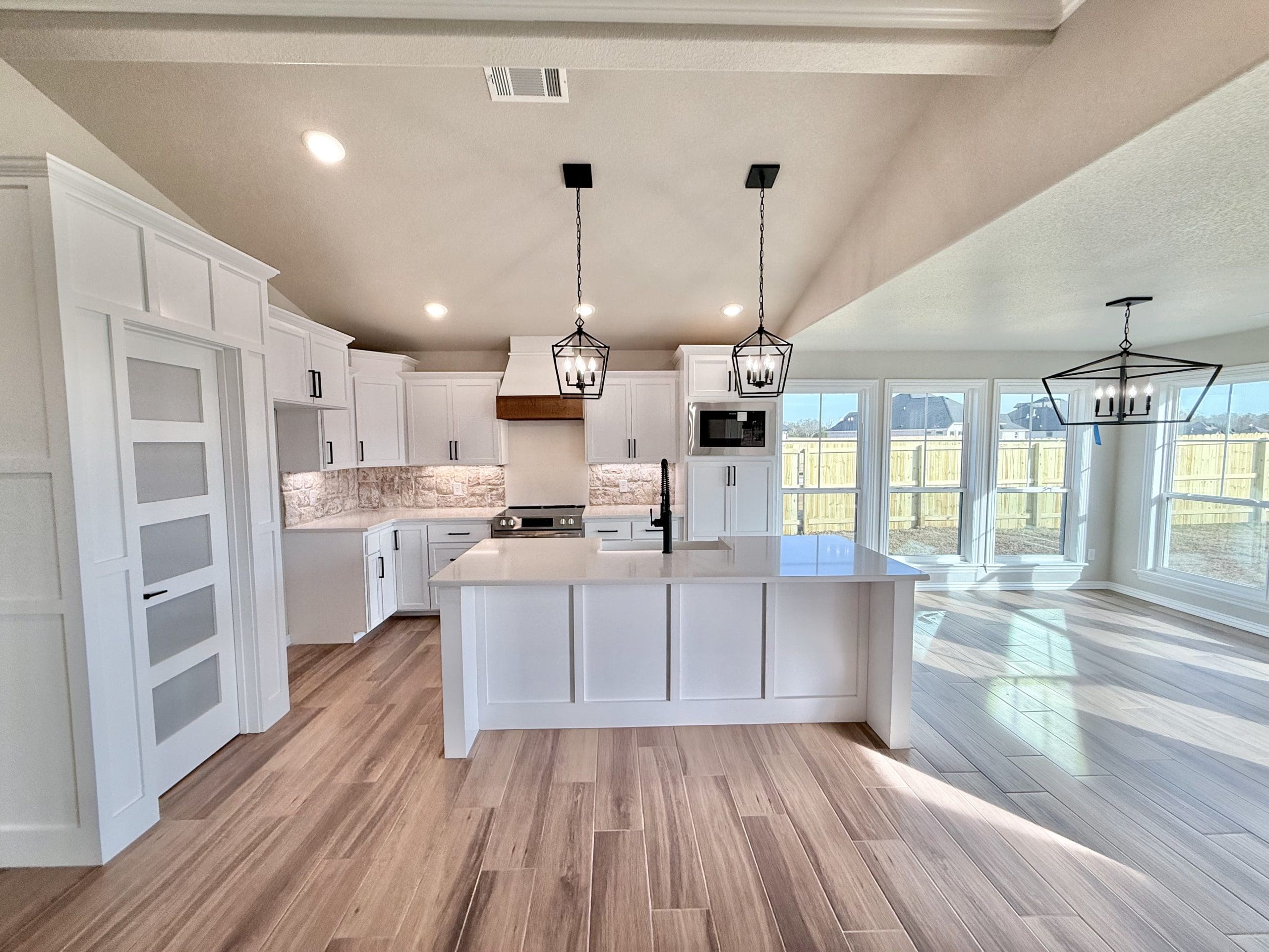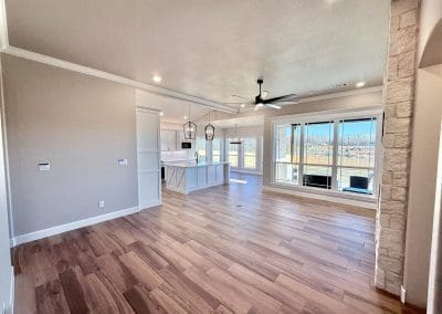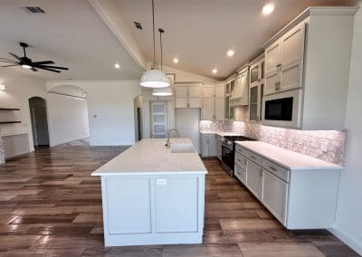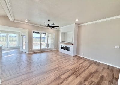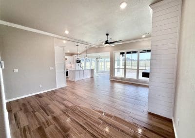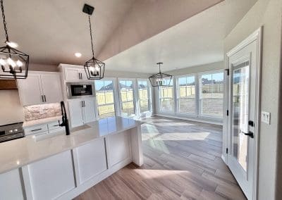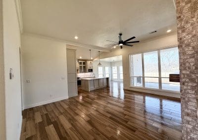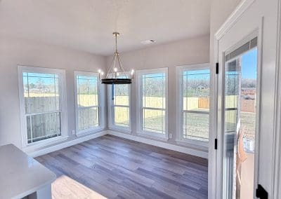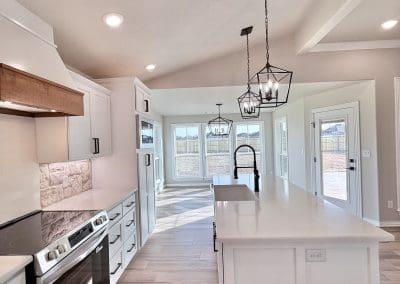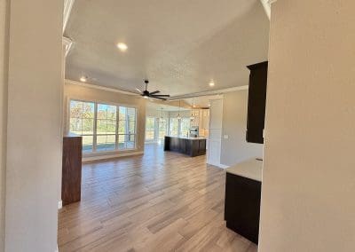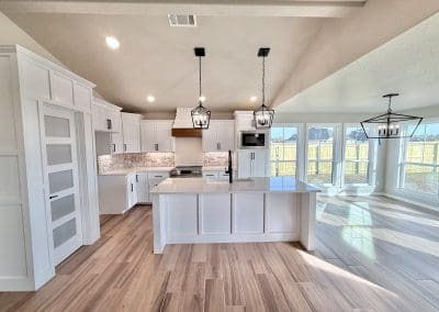 Can be built as a 3 or 4 bedroom, 2 bathroom. Split floor plan with high ceilings, open concept kitchen, living room, and dining room with a large island with seating at the island. The dining room leads out to a covered patio.