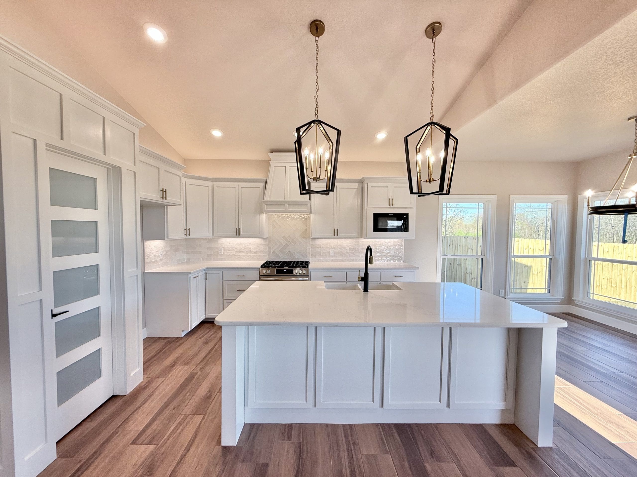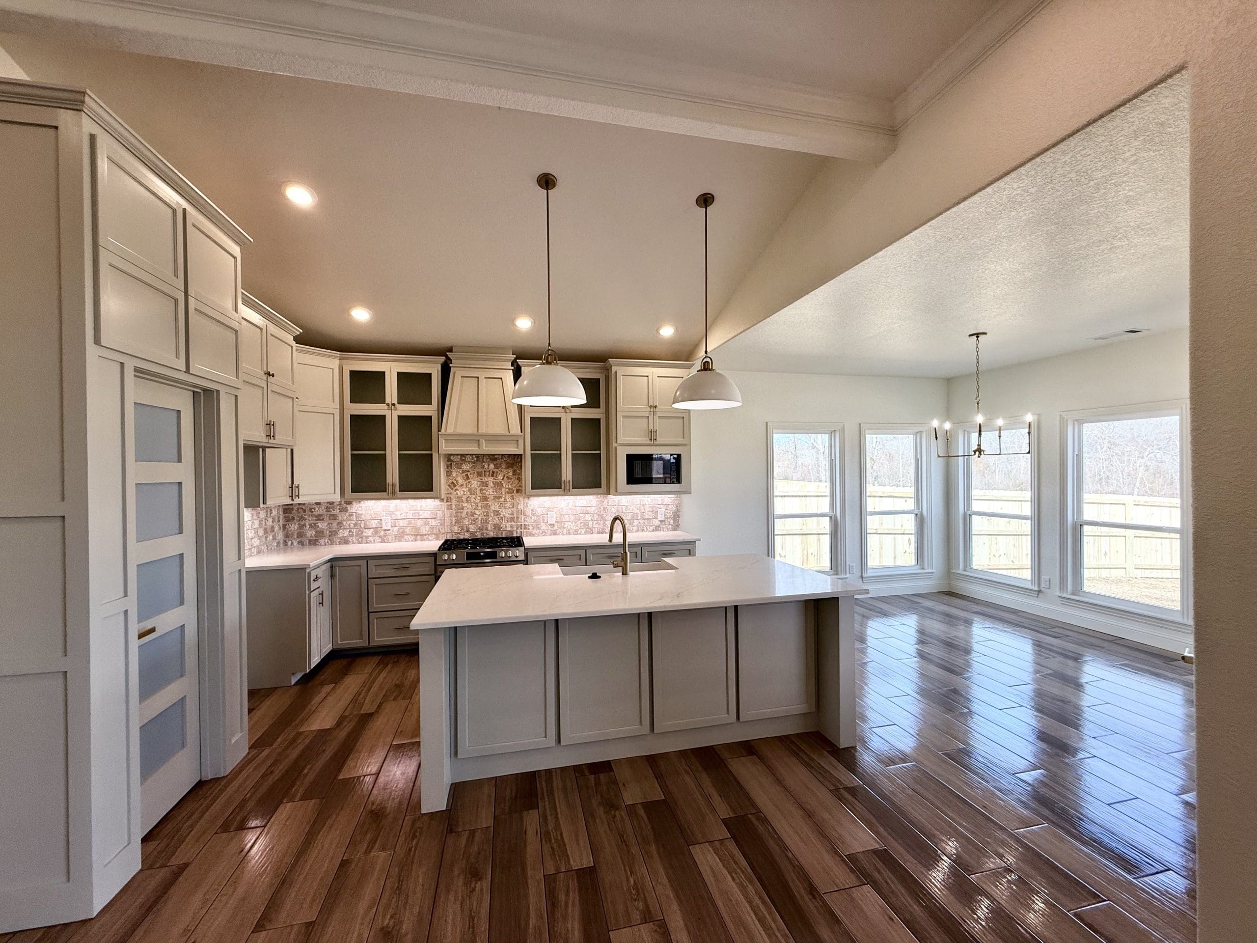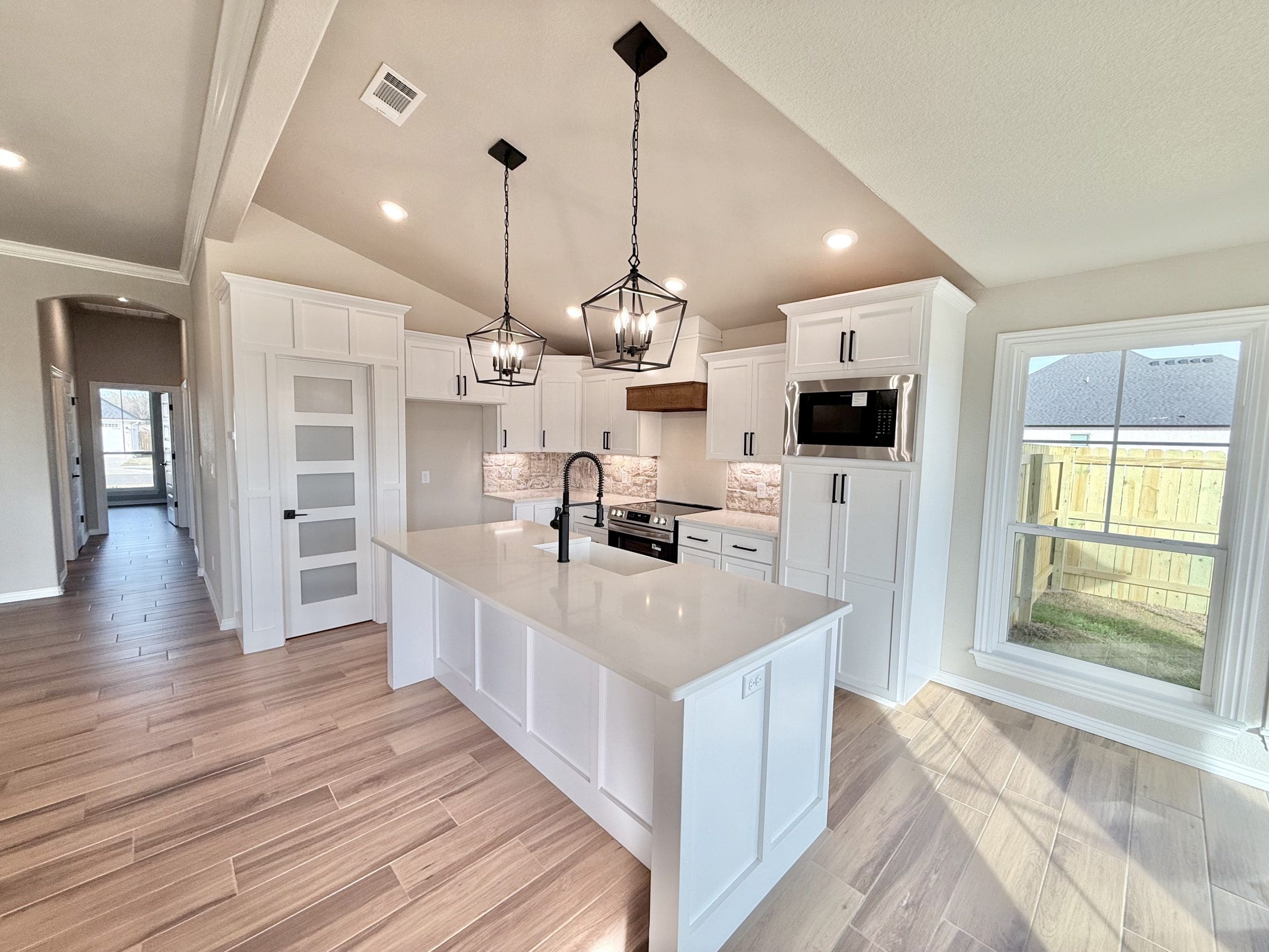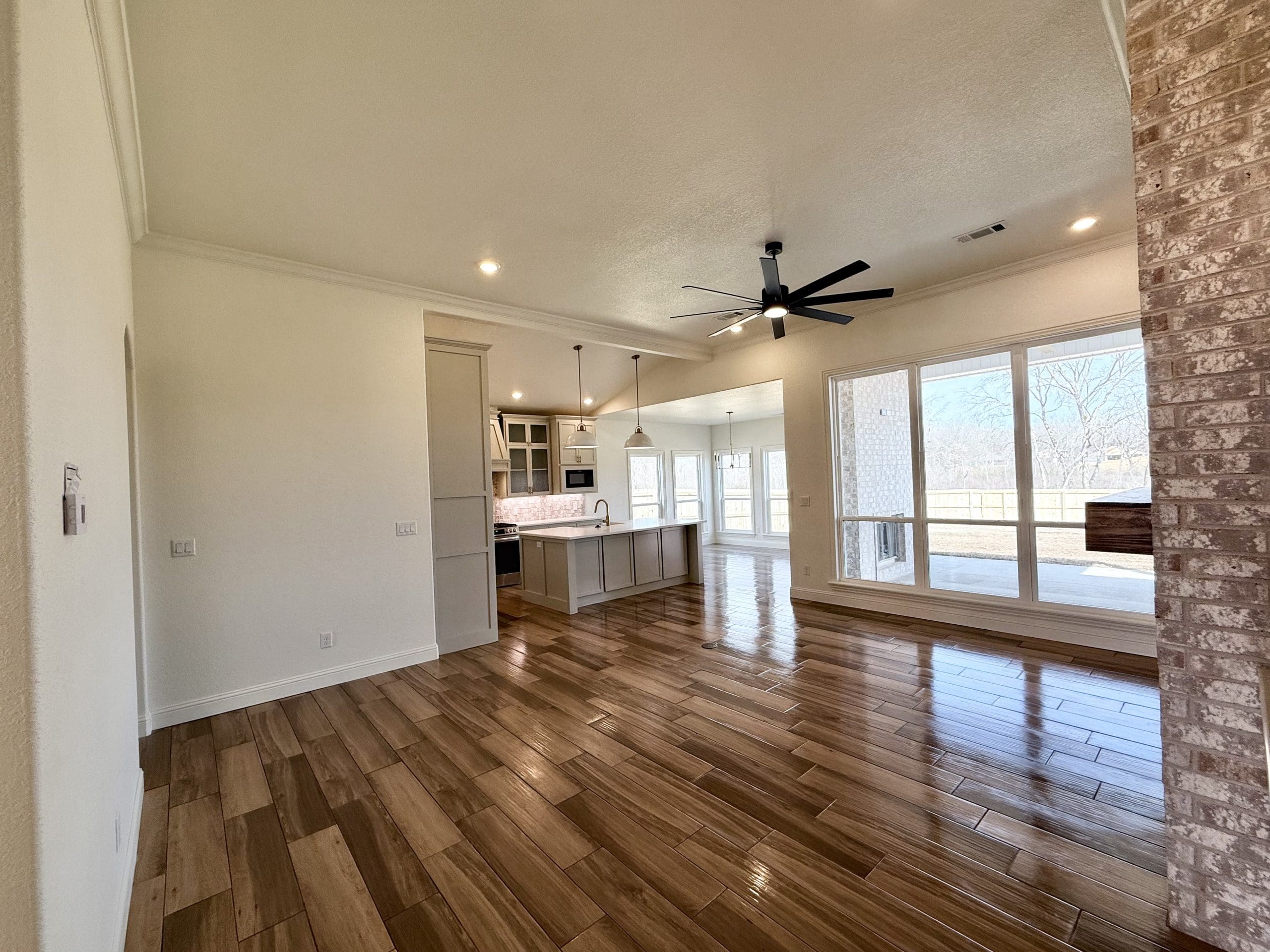 Can be built as a 3 or 4 bedroom, 2 bathroom. Split floor plan with high ceilings, open concept kitchen, living room, and dining room with a large island with seating at the island. The dining room leads out to a covered patio.