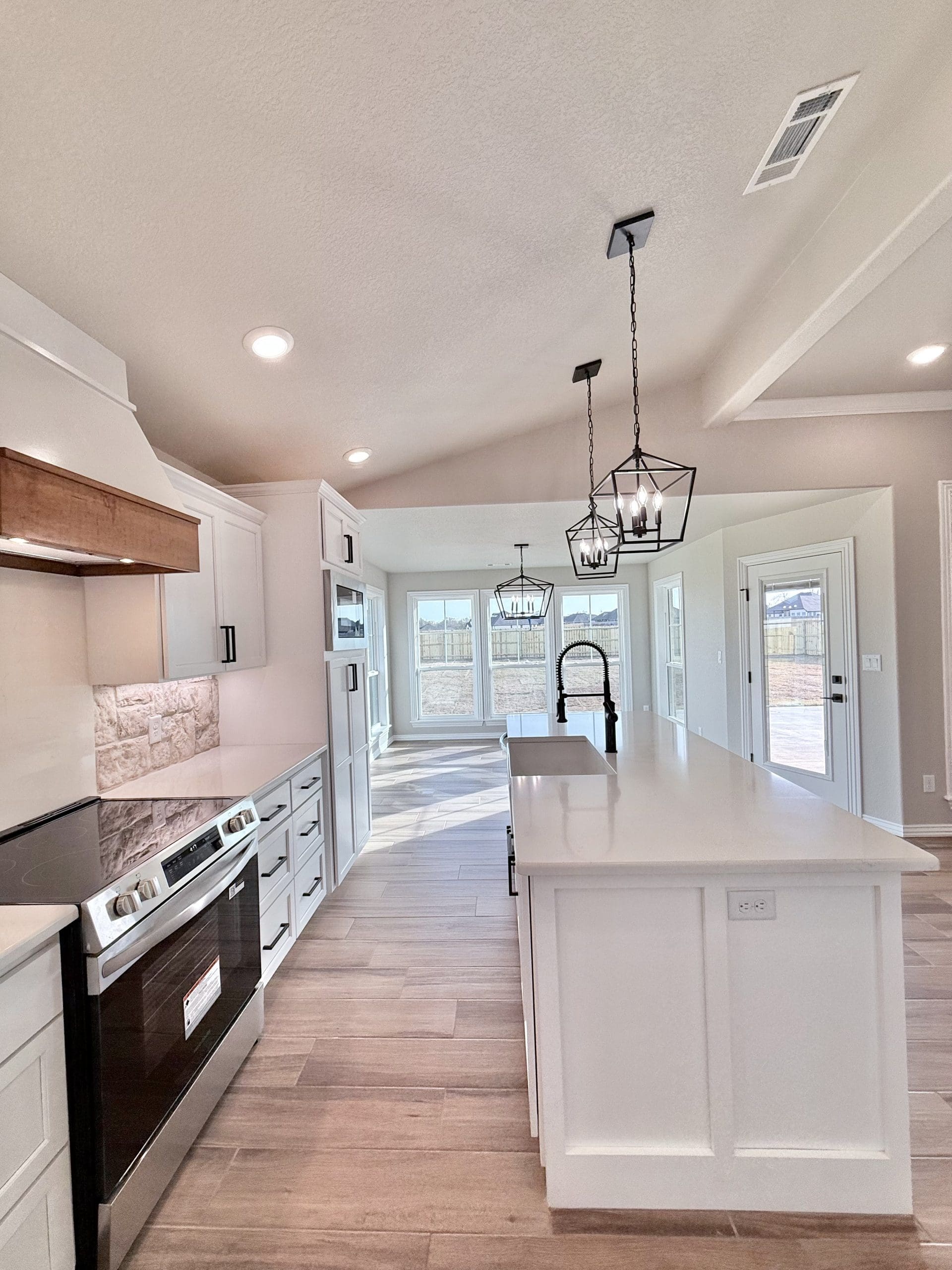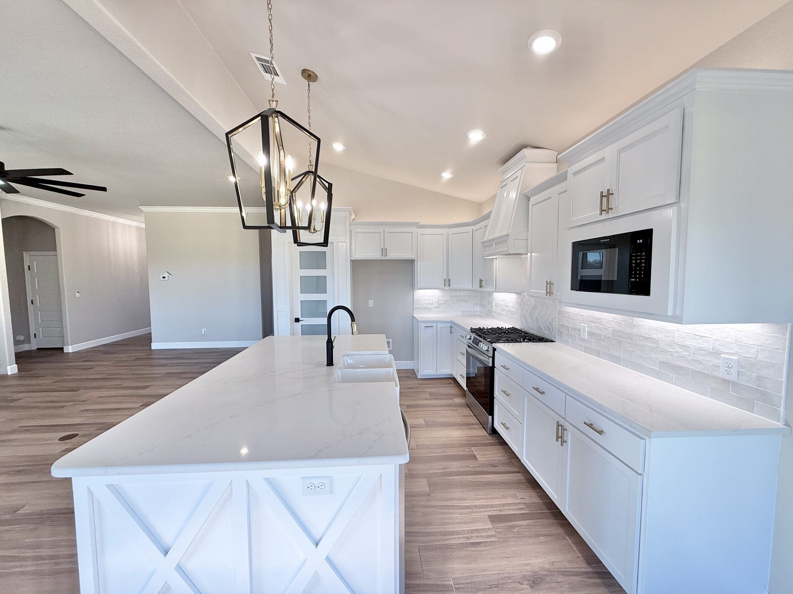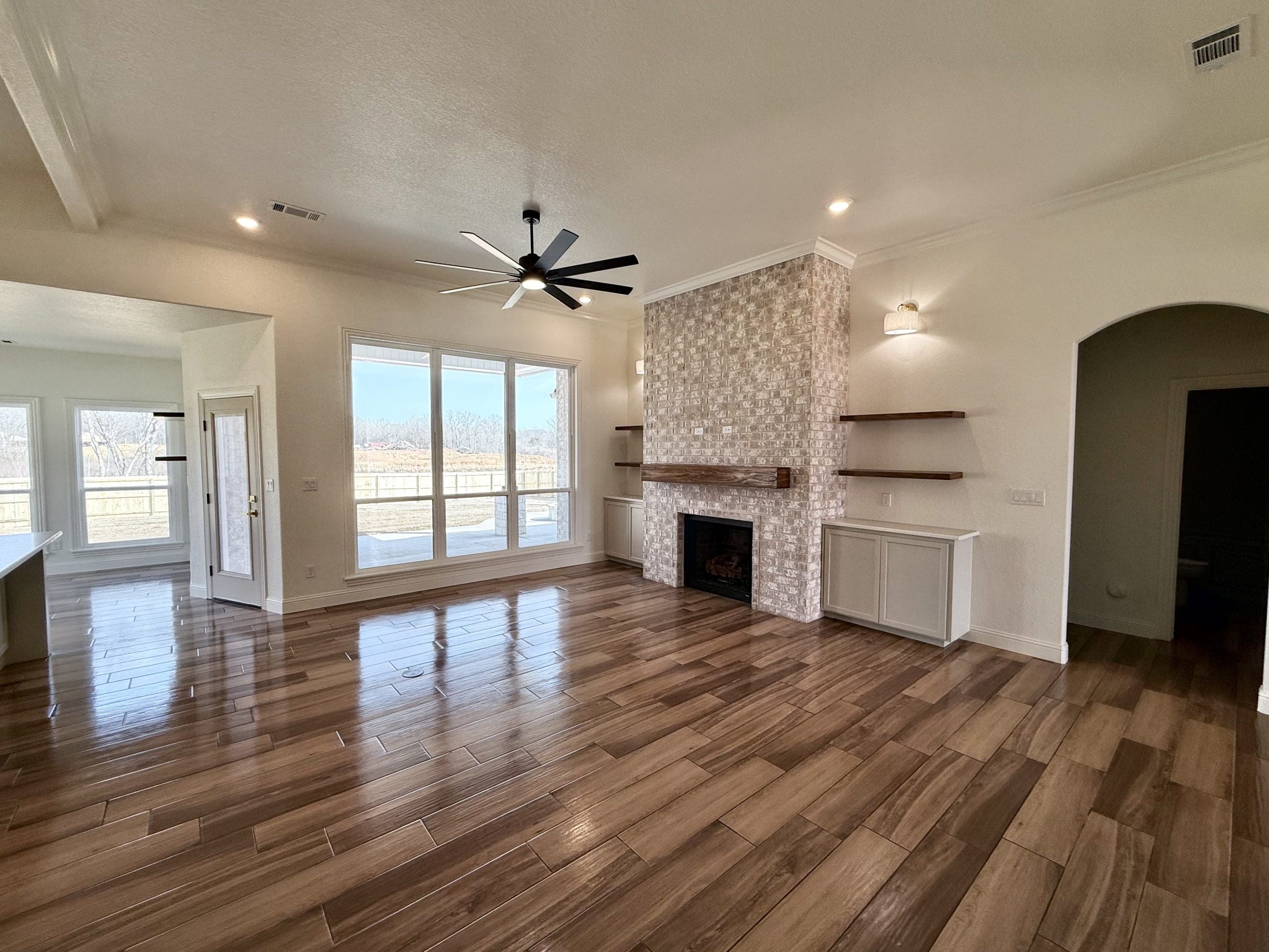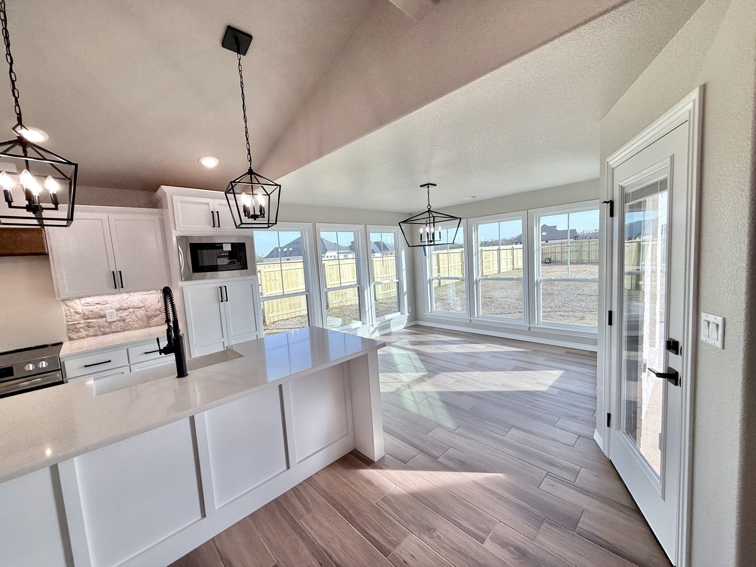Can be built as a 3 or 4 bedroom, 2 bathroom. Split floor plan with high ceilings, open concept kitchen, living room, and dining room with a large island with seating at the island. The dining room leads out to a covered patio.
