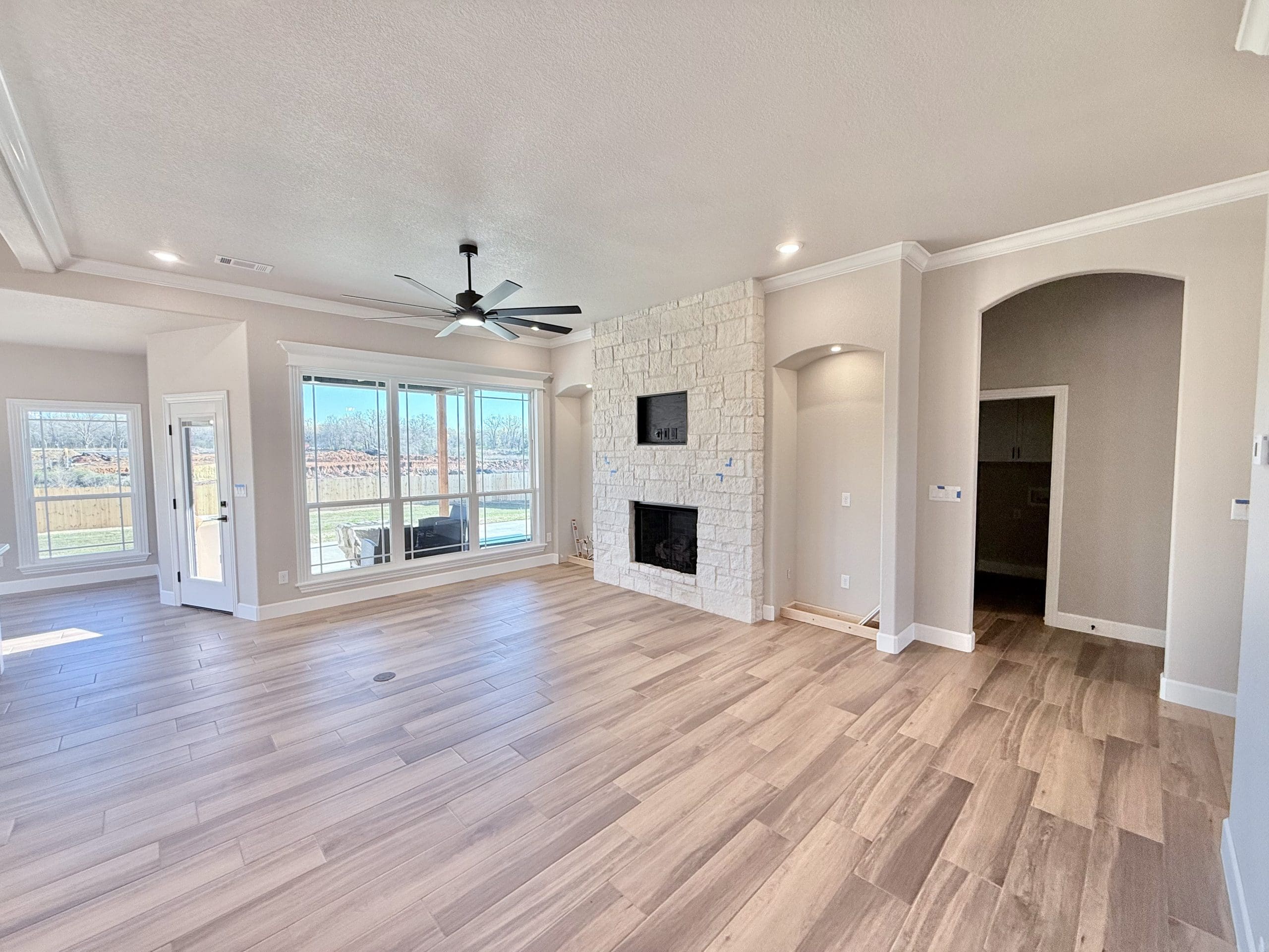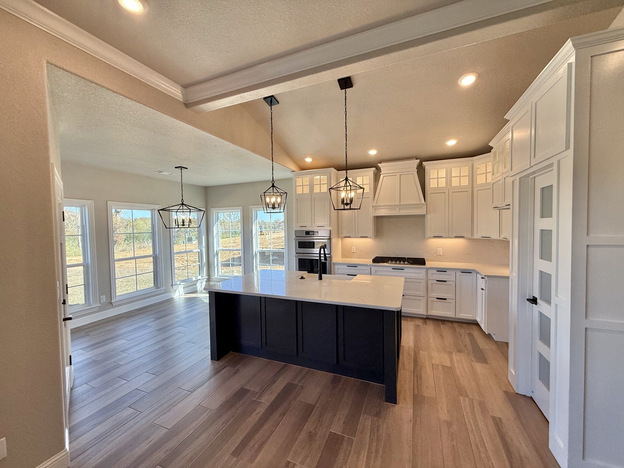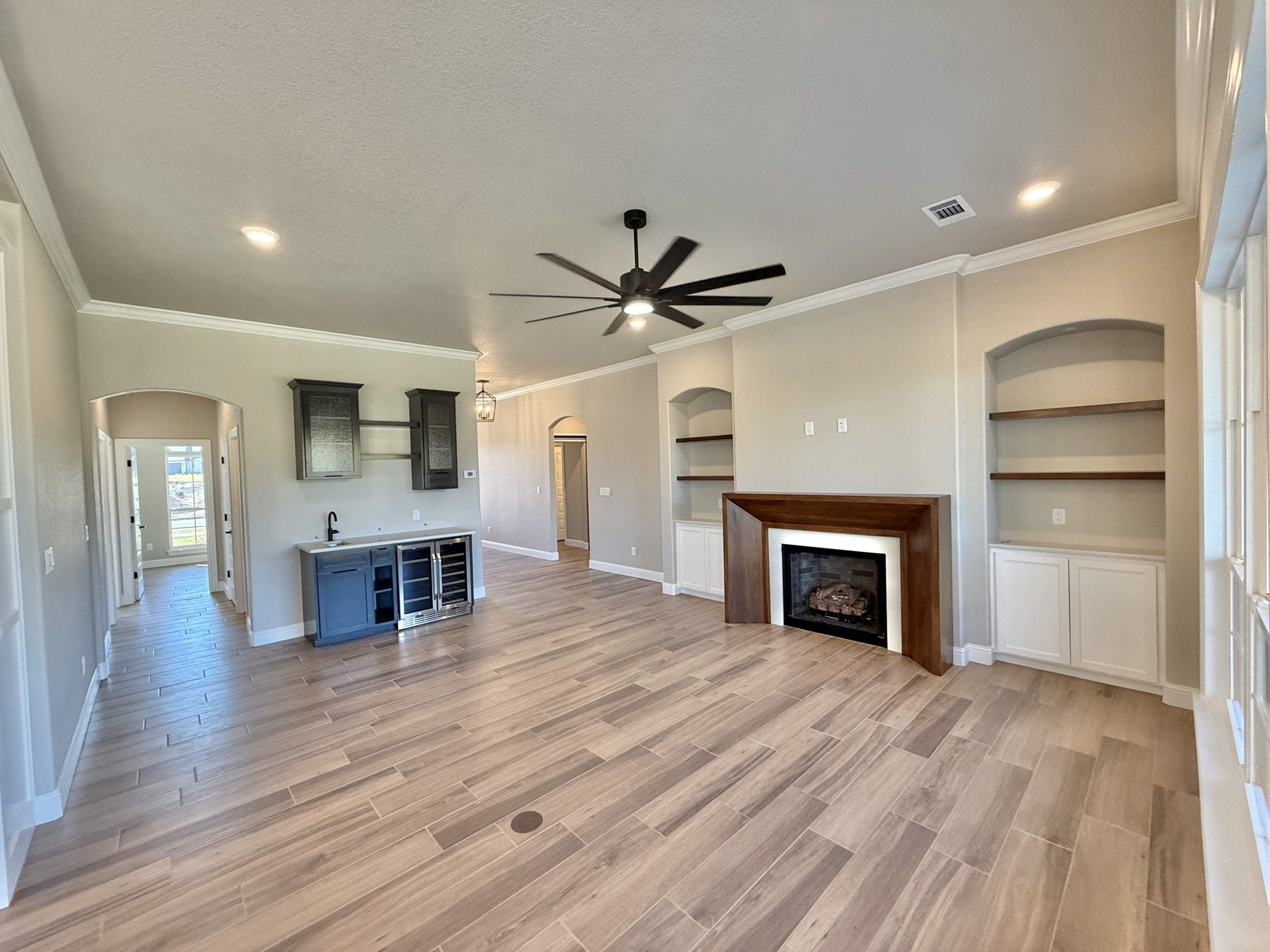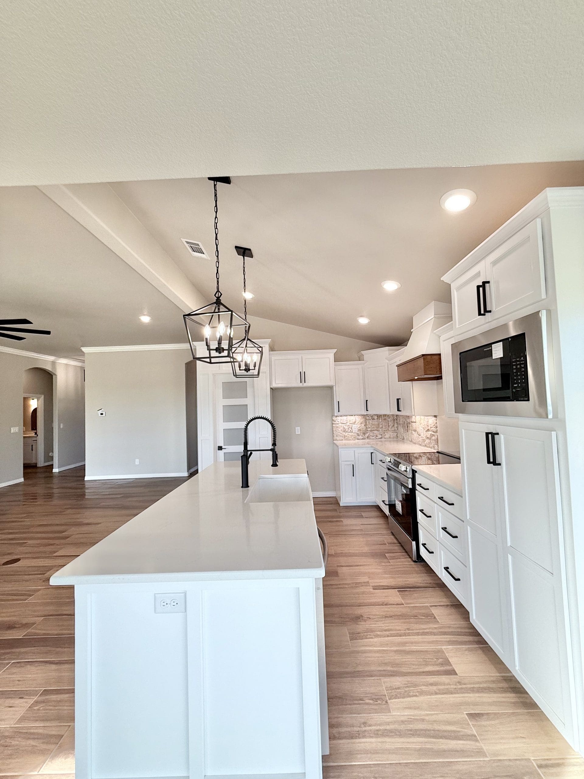 Can be built as a 3 or 4 bedroom, 2 bathroom. Split floor plan with high ceilings, open concept kitchen, living room, and dining room with a large island with seating at the island. The dining room leads out to a covered patio.