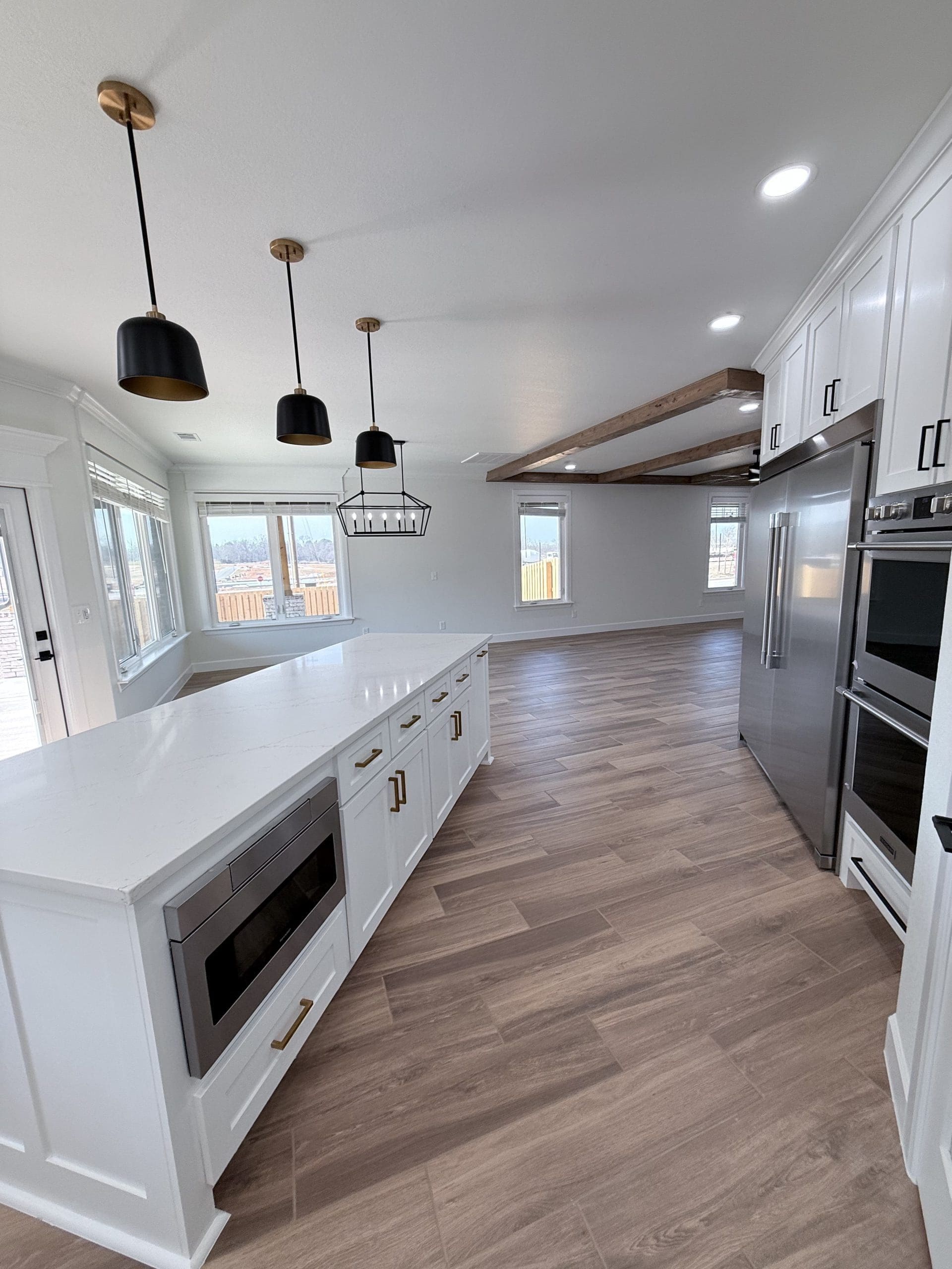 Our largest plan, can be 4-6 bedrooms, featuring a main floor master suite and open stairwell. Main floor has a dedicated office and open concept floor plan.